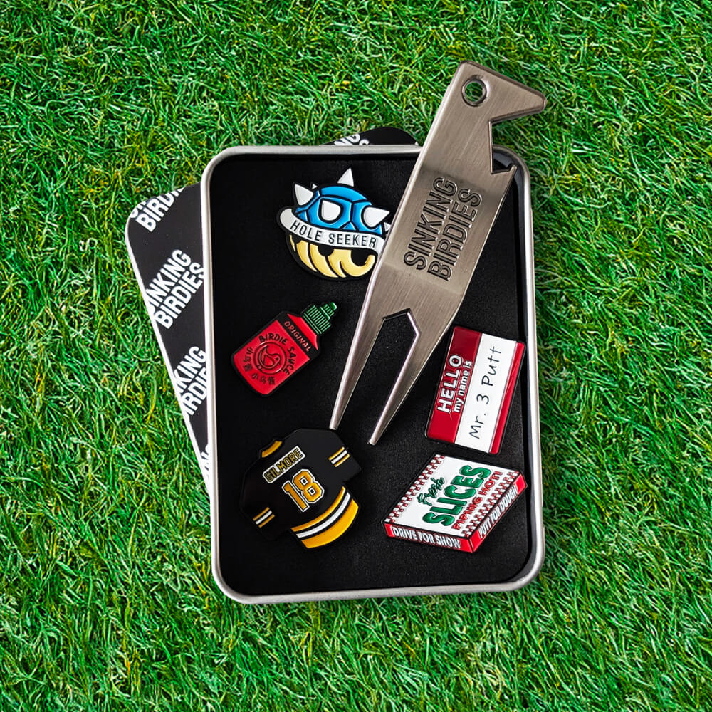 Designed for golfers who value quality and simplicity, the Sinking Birdies Divot Tool comes in a reusable gift tin and is finished in matte black or silver with a subtle, engraved logo for a clean, classy look.