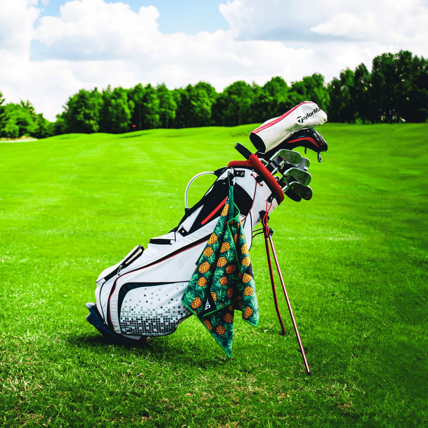 This microfibre golf towel has a large surface area and is bigger than most golf towels, allowing you to keep your clubs clean whether fully wet or fully dry.