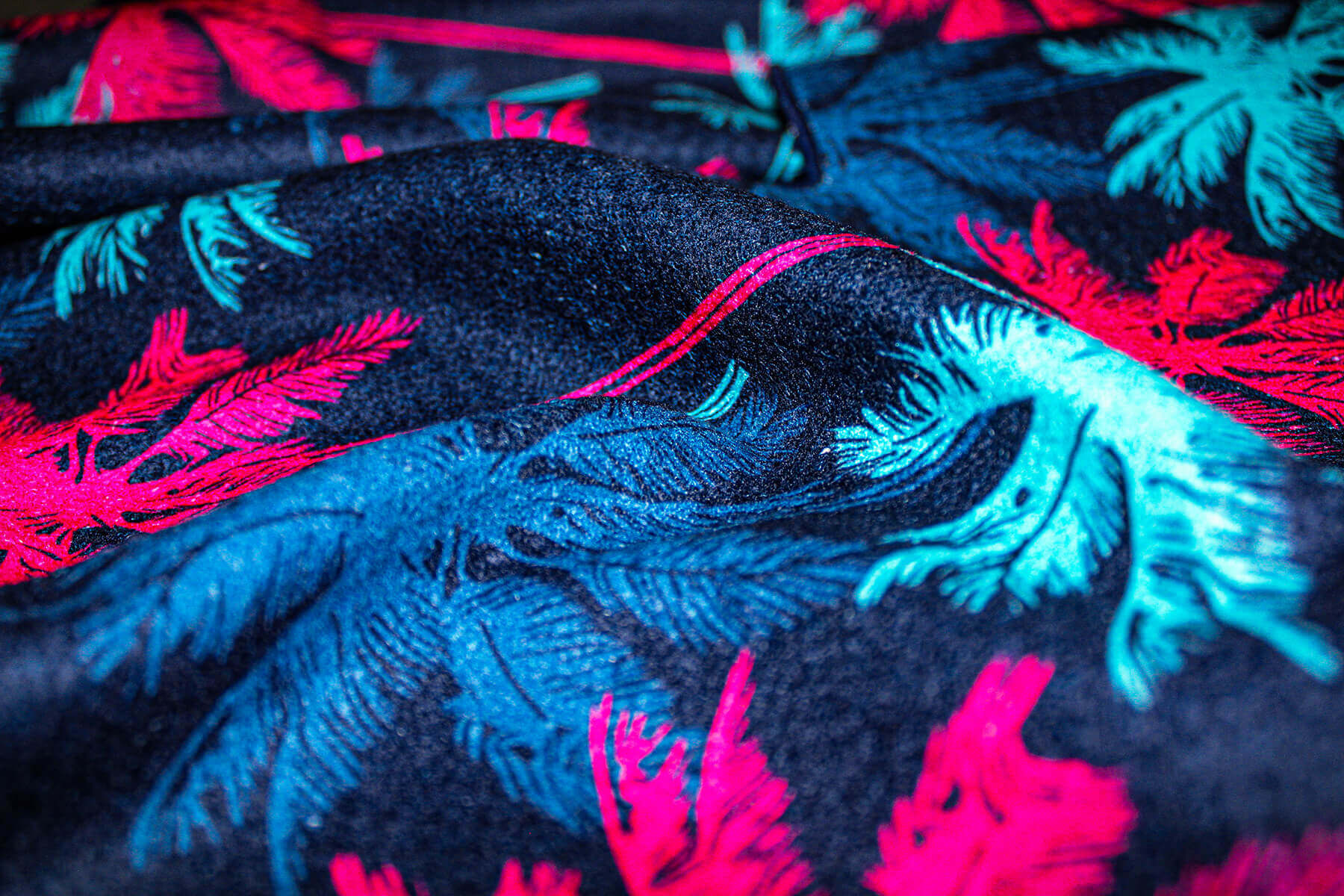 AÂ dark navy background with cool pink and cyan palm trees for a bold and energetic design that stands out.